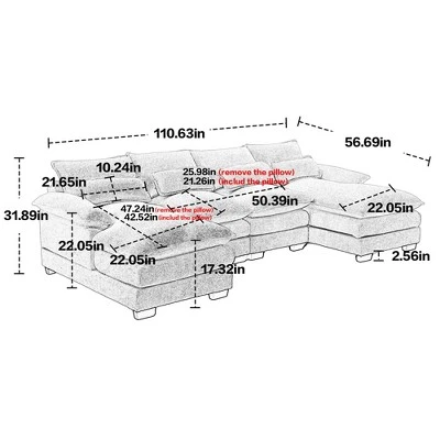 - 【Spacious U-Shaped Design】This 110.63-inch sectional sofa features a modern U-shaped design, providing ample seating space for family and guests. Its expansive layout makes it ideal for large living rooms, allowing everyone to relax and interact comfortably.