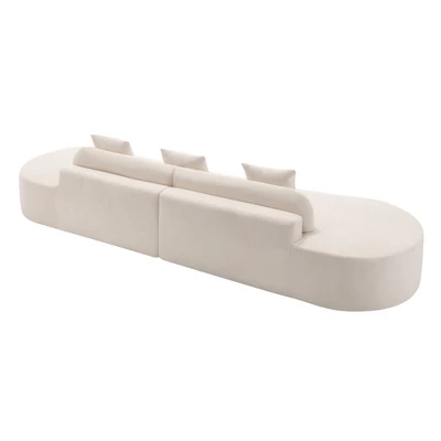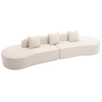 Introduce a touch of modern elegance to your living space with our Modern Curved Sectional Sofa. Designed with a minimalist aesthetic, this sofa features clean lines and a sleek, curved silhouette that complements contemporary interiors. The ergonomic design provides unparalleled support for your body, ensuring maximum comfort. Upholstered in terry fabric, this sofa is both breathable and soft to the touch, with a high-density foam and spring-wrapped structure that offers lasting durability and shape retention. Equipped with three lumbar pillows, it enhances support for your lower back. The sofa requires no assembly; simply remove it from the packaging and fluff each part to help it regain its shape.