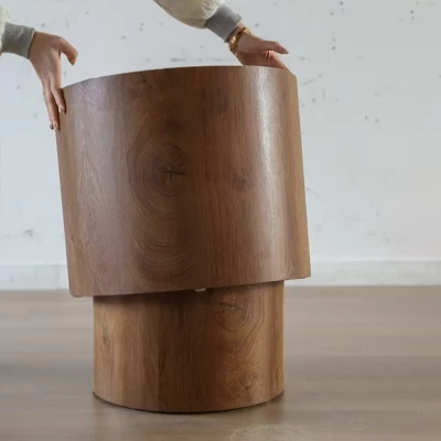 Refresh your living space with this versatile nesting coffee table set, designed to bring modern style and everyday convenience into your home. The set includes two round drum tables that can be used together for a layered look or separately to maximize functionality in small spaces. Their clean, minimalist lines and smooth wooden finish create an inviting accent that complements a wide range of decor styles from contemporary to Scandinavian.The sturdy MDF construction ensures a durable surface that resists scratches and stains, making it perfect for busy households. Each tabletop is finished with a protective lacquer, offering a smooth touch and easy cleaning for everyday use. The drum-shaped bases provide excellent stability while adding a sculptural, designer-inspired flair to your space.These space-saving tables nest neatly together, freeing up valuable floor space when not in use. No assembly is required—simply unpack and enjoy instant style and practicality in your living room, bedroom, or office. Perfect for holding drinks, snacks, books, or decorative pieces, this set offers both form and function for your home.Product dimensions: Large table: 18.11″W × 18.11″D × 14.57″H. Small table: 14.57″W × 14.57″D × 12.6″H.
