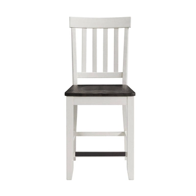 The Picket House Furnishings Jamison Counter Height Side Chair Set is the missing piece to your Jamison Dining Table! This duo comes with a wooden seat and a slat back, perfecting that cottage chic style. This counter height chair set comes in a two tone finish. The wire brush, gray finish covers the seat while the transitional white covers the back and legs. Add this set to your dining room today to create the perfect transitional, cottage chic style.