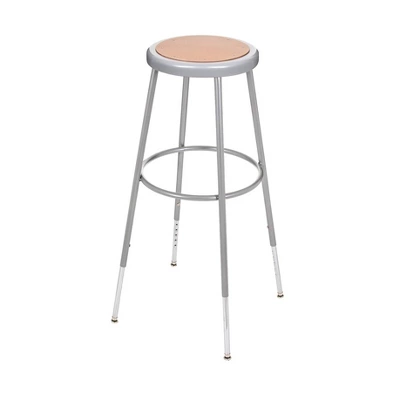 The durable construction and classic design of the 6200 Series heavy-duty stools are ideal for hands-on educational settings like art rooms, science labs, home economics or shop classrooms. Height-adjustable legs extend from 32″ to 39″ in 1-inch increments. These reliable stools feature a sturdy frame of 18-gauge steel tubing securely welded to a 14″ diameter seat pan. Riveted to the pan are firm, round Masonite seats that will not warp, chip or crack as they provide years of dependable use. Footrest rings are securely bonded to each leg with four spotwell contact points.