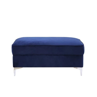The Bovasis sofa and ottoman are ideal for smaller spaces. In a contemporary design featuring nailhead trim and sturdy metal legs. The beautiful velvet upholstery is soft to the touch and the button tufting adds dimension to the sofa. Add this durable, modern-looking ottoman with wooden construction to your living room furniture. Pair it with the matching ottoman to complete the look. Available in two colors.