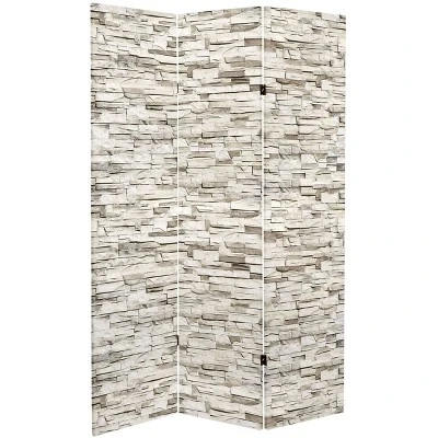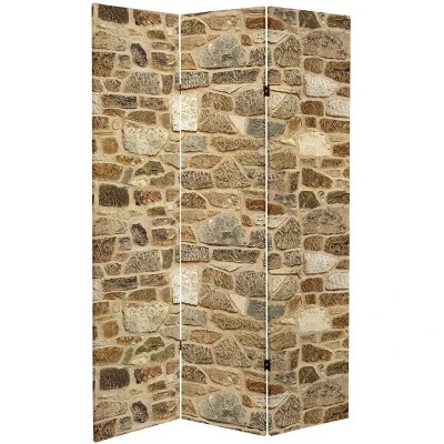 One side of this lovely room divider features a monochromatic stacked stone. The other side is reminiscent of old stone foundations. Either one is a perfect decorative accent for the discerning eye. A perfect way to divide a space, add a backdrop to your Zoom meetings, or add a colorful accent to your home.