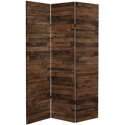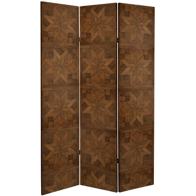 Hardwood flooring is desirable not only for its strength and durability, but also for its beauty and natural allure. The traditional pattern on one side and the ornate parquet pattern on the other highlight the true beauty of hardwood flooring. The rich walnut hue makes this room divider a versatile decorative accent.