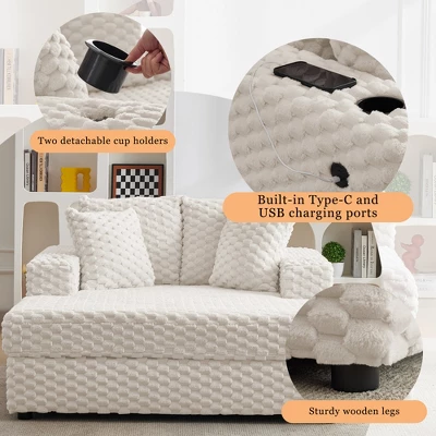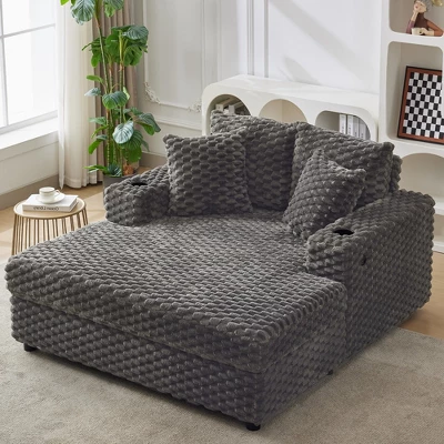 1. Product Parameters:Product Type: Oversized Upholstered Chaise Lounge ChairDimensions: 54”x60”x33”Color: Grey and BeigeMaterial: Superior Soft Chenille FabricCushion Filling: High-Density FoamIncluded Accessories: 2 x Decorative Throw PillowsArmrests: Yes, Padded ArmrestsMulti-Function: USB & Type C Charging Port and 2 Cup HolderAssembly: Required (easy process)2. Product Selling PointsGenerous Oversized Design: Sink into ultimate comfort with our expansive 60-inch chaise lounge chair. Plush Comfort & Support: Experience cloud-like comfort thanks to the deep seating, high-resiliency foam cushioning, and soft upholstery. The padded armrests and included supportive throw pillows enhance comfort.Versatile Sleeper Function: More than just a chair, this chaise easily converts into a comfortable sleeper sofa bed. Modern Aesthetic Appeal: Elevate your room’s décor with its contemporary design, clean lines, and elegant grey hue.Premium Build & thoughtful Details: Crafted with quality materials and sturdy construction, this chair is built for lasting durability. The thoughtful inclusion of throw pillows and seamless integration of armrests highlights the attention.3. Usage ScenariosYour Personal Reading: Imagine curling up on this oversized chaise lounge chair indoors by the window on a quiet afternoon, lost in your favorite book, with the soft throw pillows supporting your back.Living Room Centerpiece: Perfectly sized for your living room, providing extra comfortable lounging space for everyone.Bedroom Relaxation Retreat: Place it in your bedroom as a cozy spot to put on shoes, enjoy a morning coffee, or unwind before sleep.Spontaneous Guest Bed: When friends or family stay over, effortlessly transform this comfortable chaise into a convenient sleeper bed.Multifunctional Leisure Space: Whether binge-watching TV, playing video games, or simply scrolling on your phone.