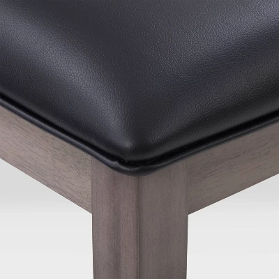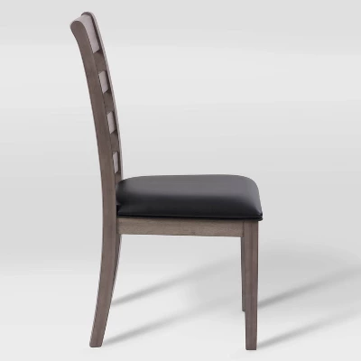 These ladder back classic washed gray dining chairs and table have clean lines and fit perfectly in any space. They have a high back for support and a foam cushion wrapped in a black leatherette that is durable and easy to clean. Coming in a set of six chairs and one table they are a cohesive mix of style and comfort, a great addition to your dining room.