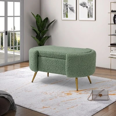 The unique shape, modern and stylish design, and furry upholstered with metal legs make this storage bench particularly eye-catching. Premium polyester fabric, which is very delicate to the touch and has no irritation to people who have sensitive skin and looks new even after long-term use. Upholstered with soft-touching and padded with high-quality foam, provides texture and comfort. Make your living space more organized with this revolutionary bench with a storage function. Metal legs and manufactured wood frame provide extra strength, it is spacious enough to store bedsheets, blankets, clothes, pillows, toys, books, and many other items. The furry bench, in a fashionable and simple style, is suitable for various scenarios. It is the best choice for your decorating a room or gifting to families and friends.Item size:39.4″W*19.7″D*18.9″H.