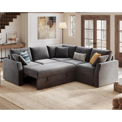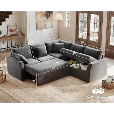 - Ample Seating Space: With dimensions of 85″ W × 85″ D, this oversized sofa provides ample seating for up to 5 people, making it a great choice for families. It easily transforms into a large sofa bed, offering plenty of room to relax and stretch out.