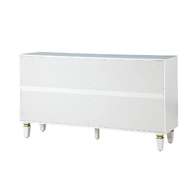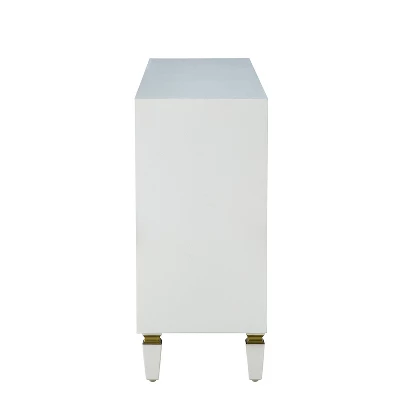This expansive sideboard is great for making a statement and adding must-have storage to any space. It’s made from solid and manufactured wood and sits on tapered legs. The four cabinet doors feature a glamorous brushed gold trim and quatrefoil pattern adding visual intrigue to this otherwise understated design. The adjustable interior shelves offer out-of-sight storage for items of all sizes. The open space at the top can be used for beautiful decorations to make your room look neat and comfortable. This sideboard is very beautiful and sophisticated, adding modern elegance to your interiors. Item Size:61″Wx15.8″Dx35.2″H