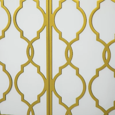 - MODERN APPEARANCE: Slim tapered legs draw the eye up to its four doors, each featuring a quatrefoil pattern and brushed gold trim.