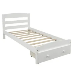 Twin/Full Size Wood Platform Bed Frame With Guardrails And Two Storage Drawers – ModernLuxe