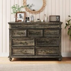 61″ Avantika Faux Marble Top Dresser Rustic Gray Oak – Acme Furniture