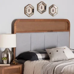 Costway Full Size Upholstered Headboard Only Adjust Button Tufted Faux Linen Light GreyDark Grey