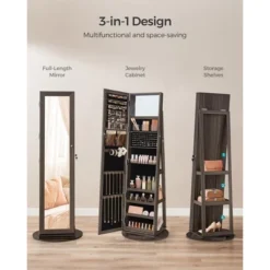Songmics Mirror Jewelry Cabinet Organizer 360° Rotating Jewelry Armoire Storage Box
