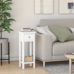Costway 2 Tier End Bedside Sofa Side Table With Drawer Shelf Acacia Wood Nightstand White