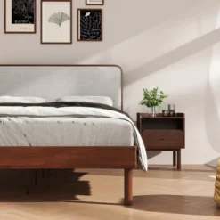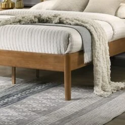 Roundhill Furniture Wyller 2-Piece Bedroom Set, Platform Bed With Nightstand, Natural Walnut, Queen