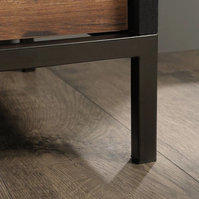 Style and storage all in one. Give your bedroom a stylish new upgrade while adding the convenient storage space that you need with this 3-drawer chest from the Boulevard Café collection. This industrial-inspired dresser features three spacious drawer that open and close on smooth metal runners. These large drawers are ideal for stowing away a variety of different items like stacks of denim jeans and button-up shirts to cozy sweatpants and your collection of t-shirts. You can find a place for all your things! This chest of drawers also features a large open shelf that provides you with additional storage space for easy access storage of items like your wallet, makeup bag, purse, and perfume bottles. This bedroom dresser includes a roomy top surface for storage and display of an accent lamp, a small mirror, decorative plants and more! This 3 drawer chest features a durable, powder coated metal frame with a perforated back for an extra touch of detail. Finished in Black with Vintage Oak accents, this bedroom chest will have you feeling organized in no time.