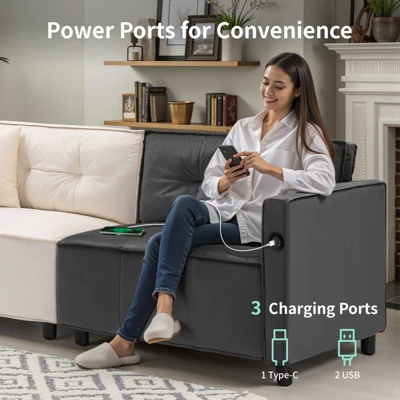 Upgrade your living space with this 83″ Modern Cloud Sofa—designed for comfort, convenience, and style! Perfect for apartments and small spaces, this three-seater loveseat features a sturdy wood frame, medium-firm velvet cushions, and built-in USB/Type-C charging ports. The tool-free assembly takes less than 30 minutes, so you can relax in no time! Whether for your living room, office, or guest area, this sleek and functional sofa delivers durable support (holds up to 750 lbs!) and modern elegance.
