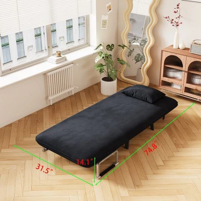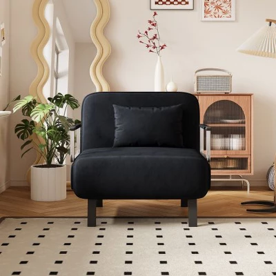 The CAVINAS Convertible Velvet Loveseat Sofa Bed offers a perfect fusion of style, comfort, and functionality. Upholstered in soft, luxurious velvet, this tri-fold design seamlessly transforms from a stylish loveseat into a cozy bed, making it ideal for compact living spaces. The adjustable backrest allows you to find the perfect angle for lounging, reading, or sleeping, while the included pillow adds extra support and comfort. Whether used as a leisure chaise lounge or a sleeper for guests, this versatile piece adds a modern, elegant touch to any living room, apartment, or studio.