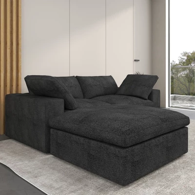 Please!!! [Put the Sofa Covers] the sofa item is the gray color when you open the boxes, But, please do not worry, all seat need to be put the sofa covers then will become right color. The Skycloud sofa is designed to provide “cloud-like comfort.” Its filling combines sponge, cotton, and down in the perfect ratio, making it soft yet resilient, which ensures comfort without sagging. The Skycloud sofa also has a modular design: you can freely combine the seats, arrange or remove the arm cushions, and choose from three modules: corner, armless, and ottoman. These features offer endless possibilities for arrangement. The Skycloud sofa is designed to provide “cloud-like comfort.” Its filling combines sponge, cotton, and down in the perfect ratio. Thanks to this filling, the Skycloud sofa is soft yet resilient. In addition, the Skycloud sofa is highly modular: you can freely combine the seats, and arrange or remove the arm cushions. Besides, you can choose from three modules: corner, armless, and ottoman. These features offer endless possibilities for arrangement. BY other word: Elevate your living space with this expansive this cloud sofa, designed for ultimate comfort and versatility. The sofa features a sturdy solid wood frame, ensuring durability and long-lasting support. Upholstered in premium hemp-blend fabric, it offers a dense yet soft texture, combining wear resistance, moisture resistance, and a static-free experience. The feather-filled cushions provide a plush, cloud-like seating experience, while the modular design allows you to customize the layout to suit your space. The included convertible ottoman adds extra functionality, perfect for lounging or additional seating. For added convenience, the removable and washable covers make maintenance a breeze. With its generous seating width and depth, this sofa offers ample space to stretch out and relax, making it the perfect centerpiece for your home. Upgrade your comfort with this stylish and practical sectional sofa today!