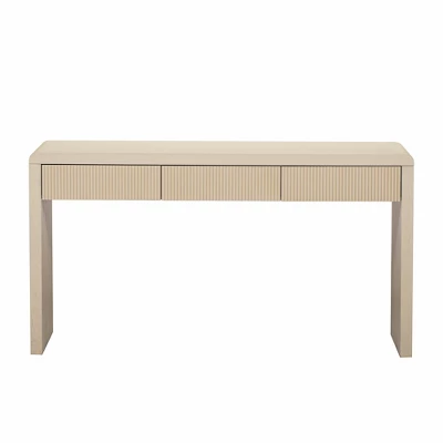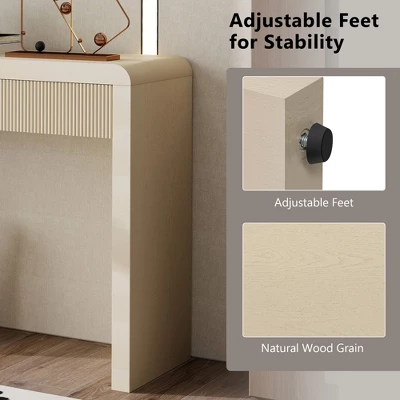Elevate your space with the ModernLuxe Console Table. Crafted from MDF + Manchurian ash veneer, it blends rustic charm with modern minimalism. The 3 fluted drawers (25 LBS each) offer stylish storage, while the 220-LBS-capacity tabletop showcases decor or small appliances. Adjustable feet ensure stability on any floor, and the neutral finish suits farmhouse, coastal, or contemporary interiors. Full assembly? Easy with detailed instructions. Perfect for entryways, living rooms, or hallways—merge style and function effortlessly.