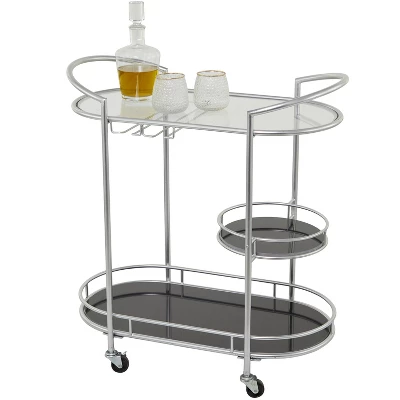 - •Compact friendly 3 tier bar cart comes in silver and black finishes that complement any contemporary interior design