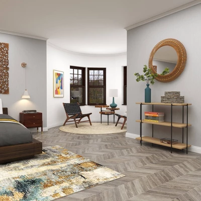 - •A 3-tier console table that sports light beige wooden shelves with black metal foundation on both sides
