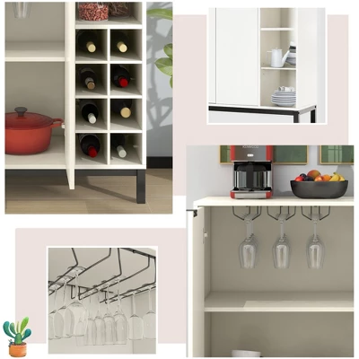 - [Multifunctional] You can place a large number of kitchen supplies or some drinks in the left storage cabinet. The wine rack on the right can be disassembled, partially or completely. The laminate in the middle of the wine rack on the right can be adjusted to meet your various storage needs