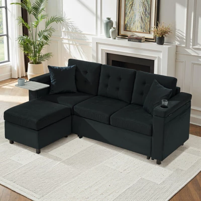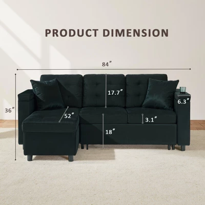 - ✔ Pull Out Couch with Storage – Features a hidden storage chaise (52”L x 24.8”W) for blankets, pillows, or books. The reversible design adapts to any room layout while keeping clutter organized.