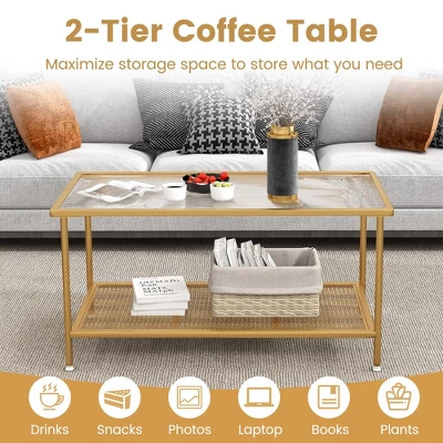 - 2-Tier Storage Option: The coffee table contains 2 tiers, providing ample space for all your essentials. The top tier is perfect for showcasing your charming decorations and the lower tier offers added storage for your books, magazines or even a blanket.