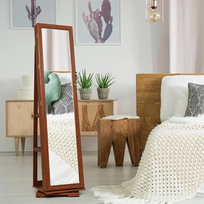 Costway 360degree Rotatable Jewelry Cabinet 2-in-1 Lockable Mirrored Organizer