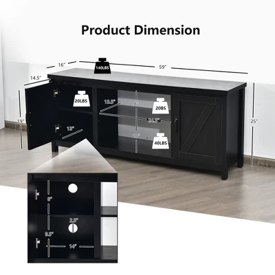 - 59” Wide TV Stand: Features a spacious tabletop, this TV stand can easily accommodate TVs up to 65”, which also can be used for displaying other decorations. Besides, 4 cable holes on the back board of the TV console can facilitate device connection and keep wires neatly arranged.