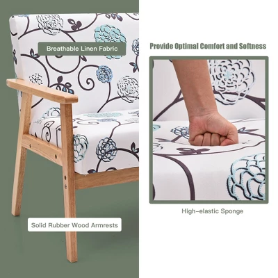 Our upholstered loveseat is perfect for you to enjoy yourself and spend leisure time!Crafted of premium wood frame, this 2-seater sofa is sturdy and durable for a long lifespan. Wide backrest and thick cushion are padded with thick sponge to ensure good resilience and maximum softness. And breathable linen cover with skin-friendly touch will provide a comfortable sitting feeling. What’s more, rubber wood armrest and ergonomic curved back can conform to your whole body and relieve your fatigue. Exquisite pattern and elegant style make it integrate with any style of room perfectly. It is ideal for your bedroom, living room, office, balcony and more.