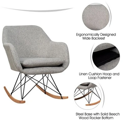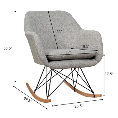 Rest on this rocking chair and enjoy the peaceful moment! It is designed with steel base and solid beech wood rocker bottom, ensuring the overall stability and durability. And the chair can hold up to 250 lbs. In addition, with softly upholstered seat, wide backrest and curved armrests, our rocking chair will provide you with a comfortable sitting experience. Modern and elegant appearance makes this accent chair be a great addition to your living room, bedroom, office and other places. You can rock the chair slowly and gently, which will help you achieve ultimate relaxation.