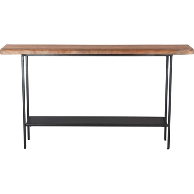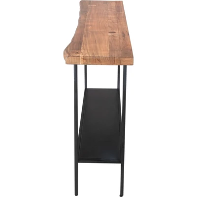 With its live edge mango wood top and powdercoated steel frame, the Donald Console table is the perfect modern piece to fit behind a comfy sofa or entry way.