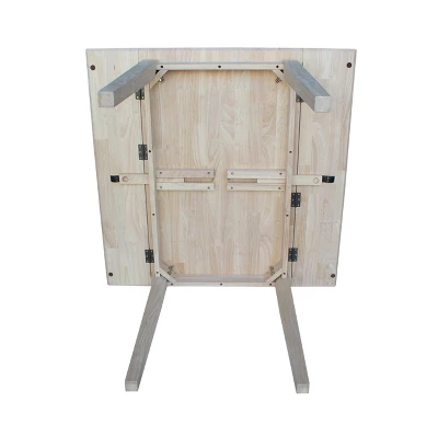For those who appreciate high quality wood furniture with a traditional and elegant look. International Concepts home furnishings will complement any decor. Crafted of solid wood, this durable table offers years of use. This table features a butcher block top supported by four shaker style legs. The table measures 40″ W x 40″ D x 29″ H. Each drop leaf is 8″ x 40″, and the center is 24″ x 40″. Left unfinished, the table is ready for your own personal stylizing to complement your envisioned dining area. This table comes ready to assemble.