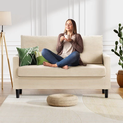 - These distinctive ridges give corduroy its signature look and feel, adding both visual and tactile interest. When you lie down on the modern loveseat sofa with your cheek touching it, you will feel the warmth and security. The luxurious appearance of this loveseat can make it your bright life partner.
