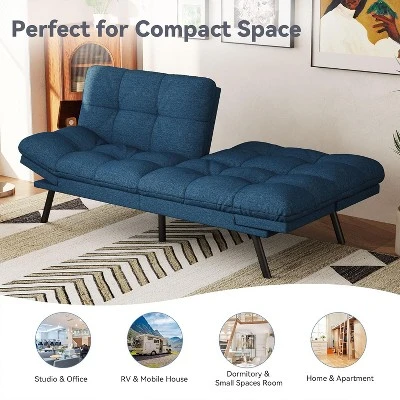 - Upholstered in high-quality Linen Fabric, this couch offers a soft, textured feel that’s both cozy and inviting. The breathable material promotes air circulation, keeping you cool and comfortable in any season, making it a perfect choice for extended lounging. Perfectly scaled for apartments and guest rooms (Sofa: 71″L x 33″W, Bed: 71″L x 42″W).
