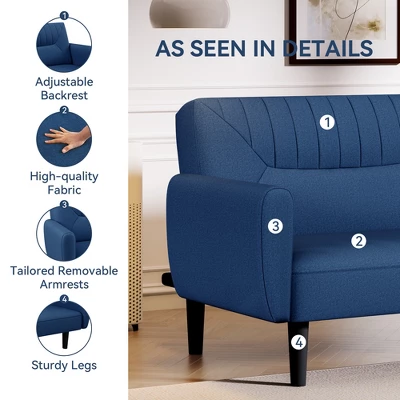 ¡¾Adjustable Convertible Design?¡¿: This futon sofa bed features a backrest adjustable in 120¡ã, 140¡ã, or 180¡ã positions, transforming seamlessly between sofa, recliner, and bed modes. Its spacious design comfortably seats 2-3 people for versatile use. ?¡¾Modern Minimalist Aesthetic?¡¿: Crafted with clean lines, retro-inspired colors, and soft linen fabric, this sofa bed blends simplicity with elegance. Available in two timeless colors, it complements diverse room styles and personal preferences. ¡¾Durable Ergonomic Build?¡¿ : Reinforced with high-density foam padding (anti-deformation) and a hybrid iron-wood frame, it supports up to 700 lbs. The ergonomic structure ensures lasting comfort and stability, even with prolonged use. ?¡¾Perfect For Small Space¡¿: Sofa size: 75.8″D x34″W x 30.3″H, Bed size: 67.9″D x 38.6″W x 21.3″H.The two-in-one design of the sofa and bed is not only practical but also space-saving. ideal for small spaces like apartments, dorms, RVs, or offices. Perfect for lounging, sleeping, or entertaining guests. ?¡¾Easy Installation¡¿ : The sofa bed is accompanied by detailed instructions and tools. All you need to do is tighten the screws in the key parts, and the sofa can be assembled within less than 20 minutes by two people. NOTE: there might be color variations between the actual product and the photos due to different lighting conditions and settings of online viewing devices.