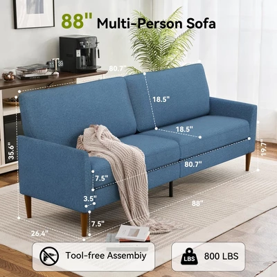 - The 88-inch 3-seater sofa combines high-resilience foam with an independent serpentine spring system, enhancing bounce-back by 50% to cradle your body¡¯s curves and distribute pressure evenly.