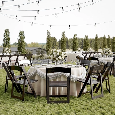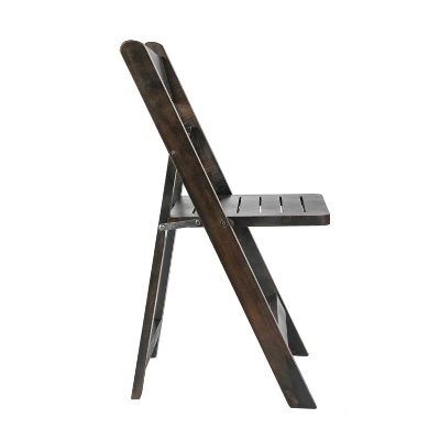 Dazzle your friends and family during your next dinner party or deliver a warm, inviting presentation to your business with this wood folding chair that combines sophistication with functionality, enhancing any room or event space. The perfect fit for your kitchen or dining room at home, this chair is also rated for commercial use, so you can rely on its versatile design to bring style and comfort to your restaurant, bar, bistro, lounge, coffee shop, café, deli, or event space. Crafted from solid beechwood with a robust mortise and tenon construction, this chair is built for durability and stability. The curved back provides comfort for extended periods to keep your guests relaxed and engaged during weddings, conferences, or luncheons. An easily foldable design allows for simple, space-saving storage and welcome portability to move and transport your chair hassle-free. This chair boasts a static weight capacity of 300 lbs., accommodating a variety of users while maintaining structural integrity. Plus, fixed floor glides are designed to protect your hard flooring surfaces from damage, enabling you to freely and confidently move your chair around your space. No assembly is required, saving you from the need to waste time and energy on a tedious setup process. Clean up is a breeze – Simply wipe with a damp cloth to keep it looking pristine. Whether you’re furnishing a cozy home dining area or an elegant commercial venue, this folding chair is an excellent choice for style and convenience.