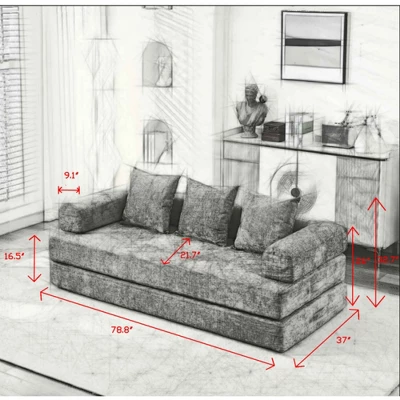 This convertible sleeper sofa features a sleek, adaptable design that easily transforms from a regular sofa into a floor sofa or bed, with a modular build for customizable configurations. Functionally, it’s a space – saving gem, folding neatly for storage in small spaces, and comes with free pillows for extra comfort and a non – slip pad for stability. With no assembly required, simply unpack and let it rebound in 24 – 48 hours. Crafted from soft, breathable Chenille fabric, with a sponge and spring pack structure, it offers both luxury and durability for daily use. In essence, this sofa combines style, practicality, and quality, making it an ideal choice for modern living spaces.