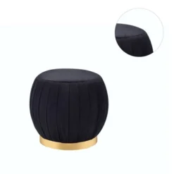 Simple Relax Upholstered Round Ottoman With Metal Base In Black And Gold