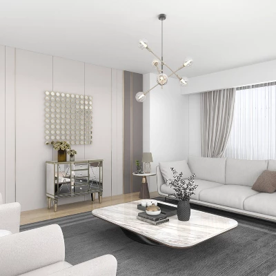- This glam-themed sideboard buffet cabinet highlights a glossy metallic silver outline finish emphasized with highly reflective mirror panels