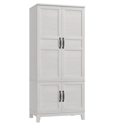 This wooden armoire cabinet offers 4 sturdy doors and 2 adjustable shelves to keep your apartment or bedroom essentials organized and easily accessible. This adjustable shelf has 18 adjustment holes to help you plan your wardrobe space. Remove the shelf to hang longer clothes. Place the shelf in the middle to hang shorter clothes. Placing the shelves on top and the clothes hanger on the bottom can facilitate teenagers to hang clothes.