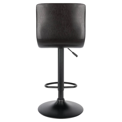 Update your interior decor with sleek style when you add the Holly Airlift Adjustable Stool from Winsome to your seating ensemble. Featuring an espresso-brown L-shaped seat, a black metal frame and a round base, this upholstered adjustable stool easily complements your existing decor with polished flair. The faux-leather upholstery and built-in footrest help provide seating comfort, while the adjustable design makes it easy for you to find your preferred height. Use this faux-leather adjustable stool anywhere from your dining room to your den to bring comfort and modern design to your living space.