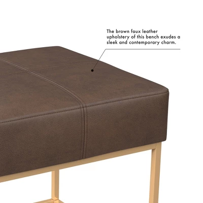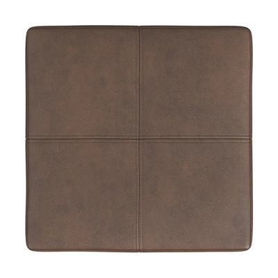 - Fully upholstered in brown faux leather