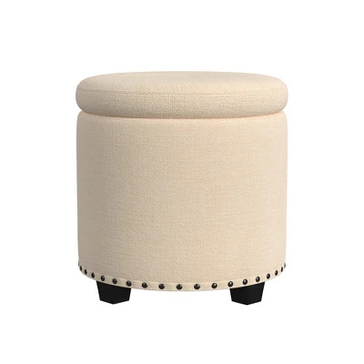 Our HomePop Storage Ottoman with Nailheads in a Cream Woven offers a sleek, traditional design with functional storage. Use it in your living room or family room to contain controllers, remotes or toys or place it in your bedroom to store extra pillows or blankets. Two paired together doubles the impact wherever you need it most! Easy to assemble and maintain. Spot clean only. Please note that fabric and wood colors may appear slightly different due to variations in lighting or screen settings.
