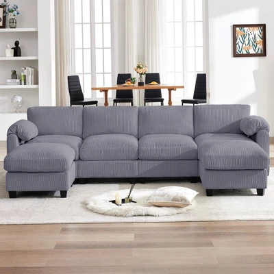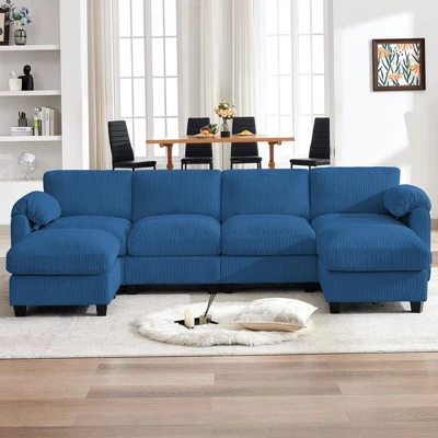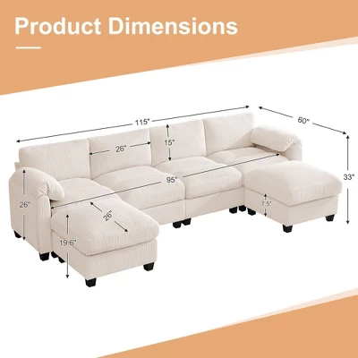 - Comfortable and Durable: Sturdy solid wood frame, filled with high-quality sponge and comfy Corduroy fabric, making the sectional sofa with ottoman keep comfy and soft but firm so won’t lose shape easily for a long time