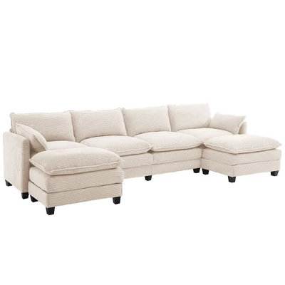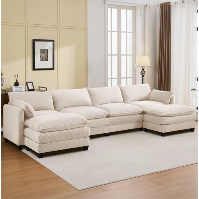 The Hyleory Corduroy U-Shaped Sectional Sofa is designed for comfort and flexibility. With seating for four and two movable ottomans, this modular couch easily adapts to your space, whether you need a cozy sofa for small apartments or a spacious centerpiece for your living room. Made with durable corduroy fabric, it adds warmth and texture to your home decor while offering everyday comfort. Perfect for family gatherings, movie nights, or simply relaxing, this sectional sofa combines style, practicality, and versatility for modern living.